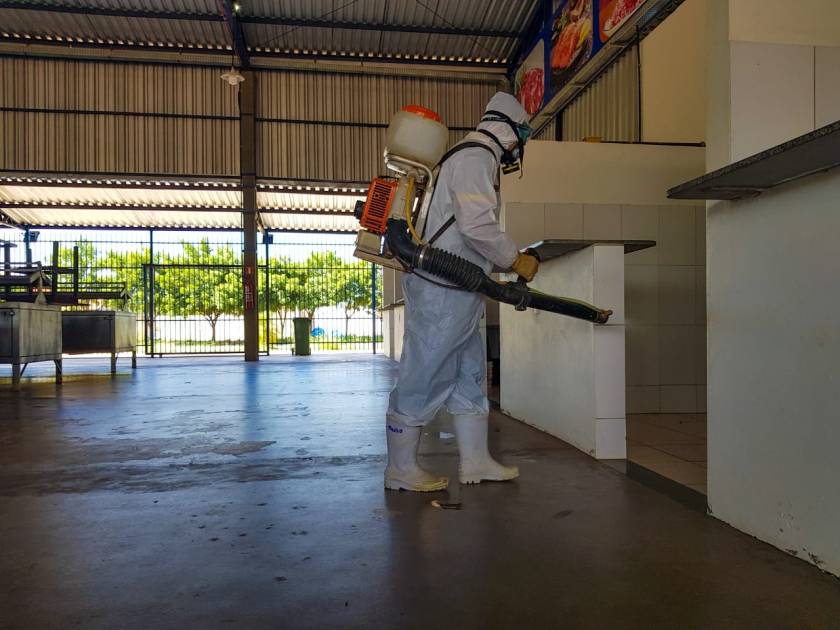 Feira do Mimoso 2 passa por desinfecção contra Covid-19.