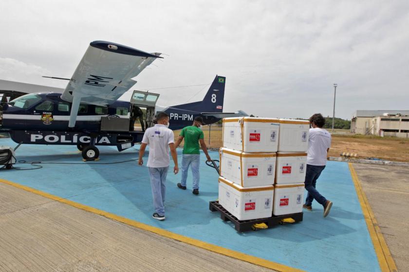 Aeronaves do Estado iniciaram, às 13h desta quinta-feira (1), o transporte de mais 495 mil vacinas contra a covid-19. Os imunizantes estão sendo levados por aeronaves do Grupamento Aéreo (Graer), da Polícia Militar e da Casa Militar do Governador.