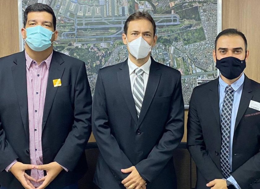 Secretário de Governo Danilo Henrique, Coordenador –Geral de Outorgas da Secretaria Nacional de Aviação Civil Fabiano Gonçalves de Carvalho e o prefeito Junior Marabá. Foto divulgação.