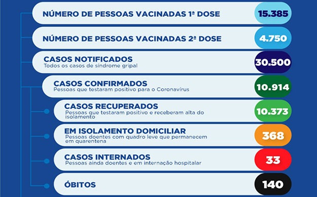 Barreiras confirma 70 novos casos de Covid-19. Taxa de ocupação dos leitos de UTI’s se mantém em 98%. Os casos positivos tratam-se de 45 pessoas do sexo feminino e 25 do sexo masculino. 368 pessoas estão em isolamento domiciliar.
