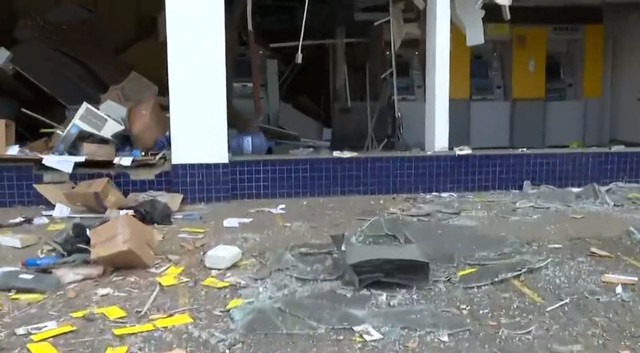 A agência ficou destruída e cédulas marcadas com a tinta de segurança foram encontradas do lado de dentro.
