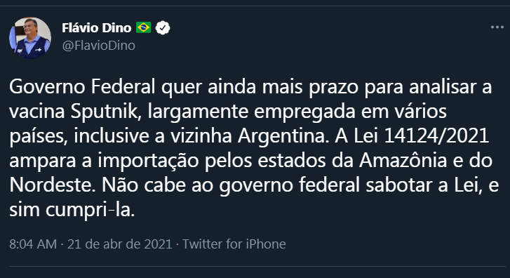 Governo negacionista do Ogro e a ANVISA, aparelhada, continuam com o pé em cima da vacina Sputnik V.