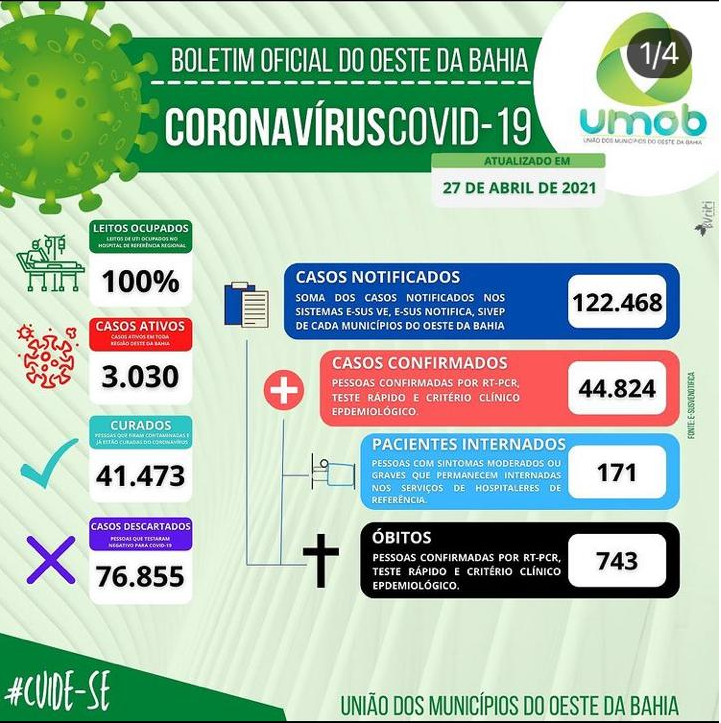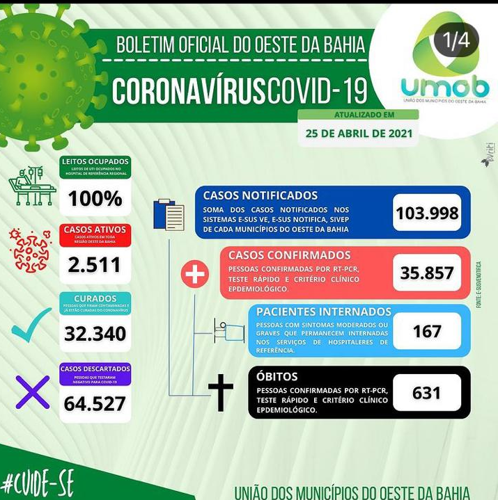 São números oficiais, acredite: 112 mortes por Covid no Oeste baiano em apenas 3 dias.
