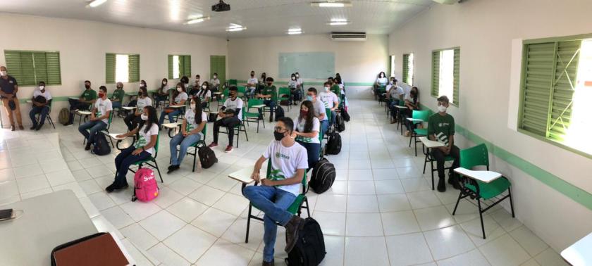 Após um longo período de paralisação, por conta da pandemia da Covid-19, a Fazenda Modelo Paulo Mizote retomou as aulas do Programa Jovem Aprendiz na Área Rural, nesta quarta-feira (04). Os 78 estudantes matriculados em dois turnos, que estavam estudando remotamente desde fevereiro, iniciaram os módulos práticos da capacitação técnico-profissional.
