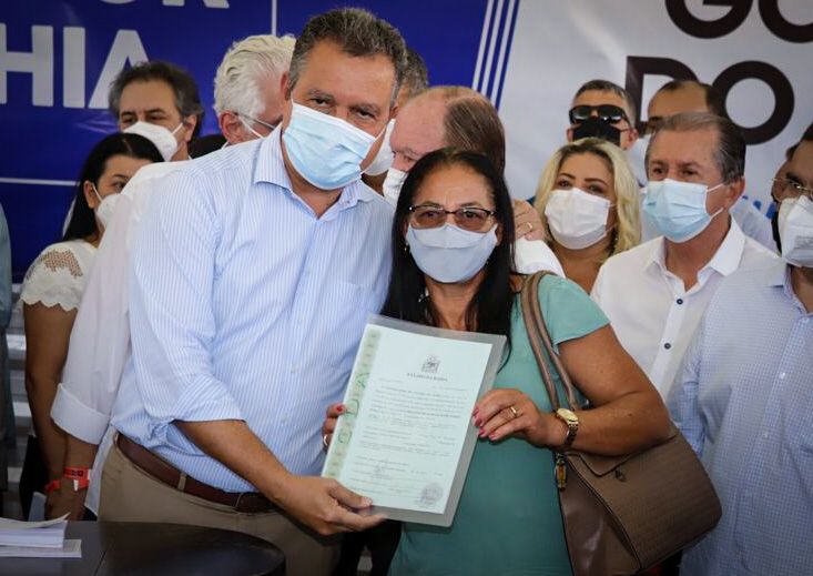 Pela manhã o governador fez a entrega do titulo de terra a dona Dilce Barbosa, pequena produtora rural de Correntina. Dona Dilce teve seus 18 hectares titulados pelo programa de regularização fundiária do CONSID.
