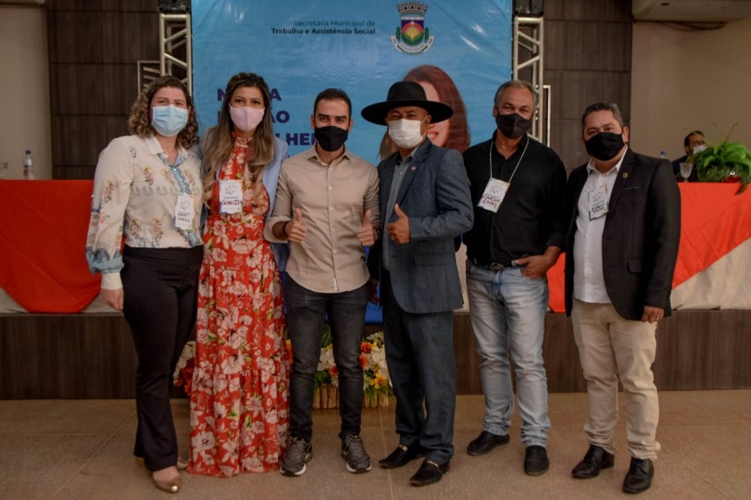 Comporam a mesa, representes dos usuários e trabalhadores do Sistema Único da Assistência Social (SUAS), Maria Aparecida  e Marcelo Firme. O presidente do Conselho Municipal da Assistência Social, Durval Rodrigues, o vereador Fábio Rocha, o palestrante, Jailton Fernandes, a secretária Scheilla Bernardes e o prefeito Junior Marabá,  que declarou aberta a Conferência.