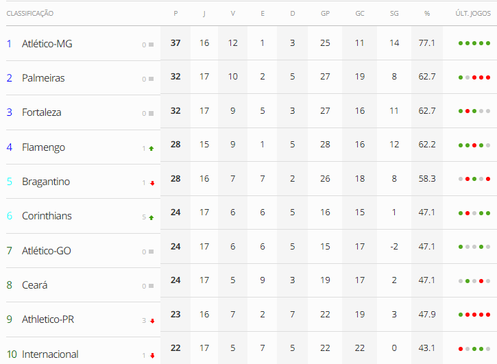 Veja a parte superior – e a inferior – da tabela de classificação, que se aproxima do fim do primeiro turno:
