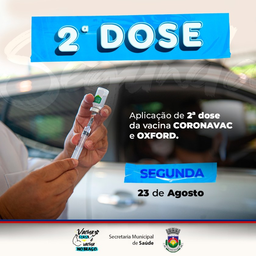Será retomada nesta segunda-feira (23), das 8h às 16h, a vacinação para a segunda dose da Oxford e Coronavac.