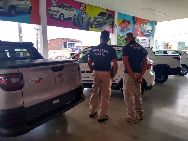 Em Itapetinga, na sede de uma concessionária autorizada de veículos, foi cumprido pelos policiais civis um mandado de busca e apreensão, resultando na apreensão de um veículo NOVA STRADA ENDURANCE CP 1.4, 0 km, além de 426 (quatrocentas e vinte e seis) NFs de vendas diretas de veículos diversos realizadas entre 2015 e 2018 e centenas de cópias de contratos celebrados para vendas de veículos nessa modalidade até 31/08/2021.