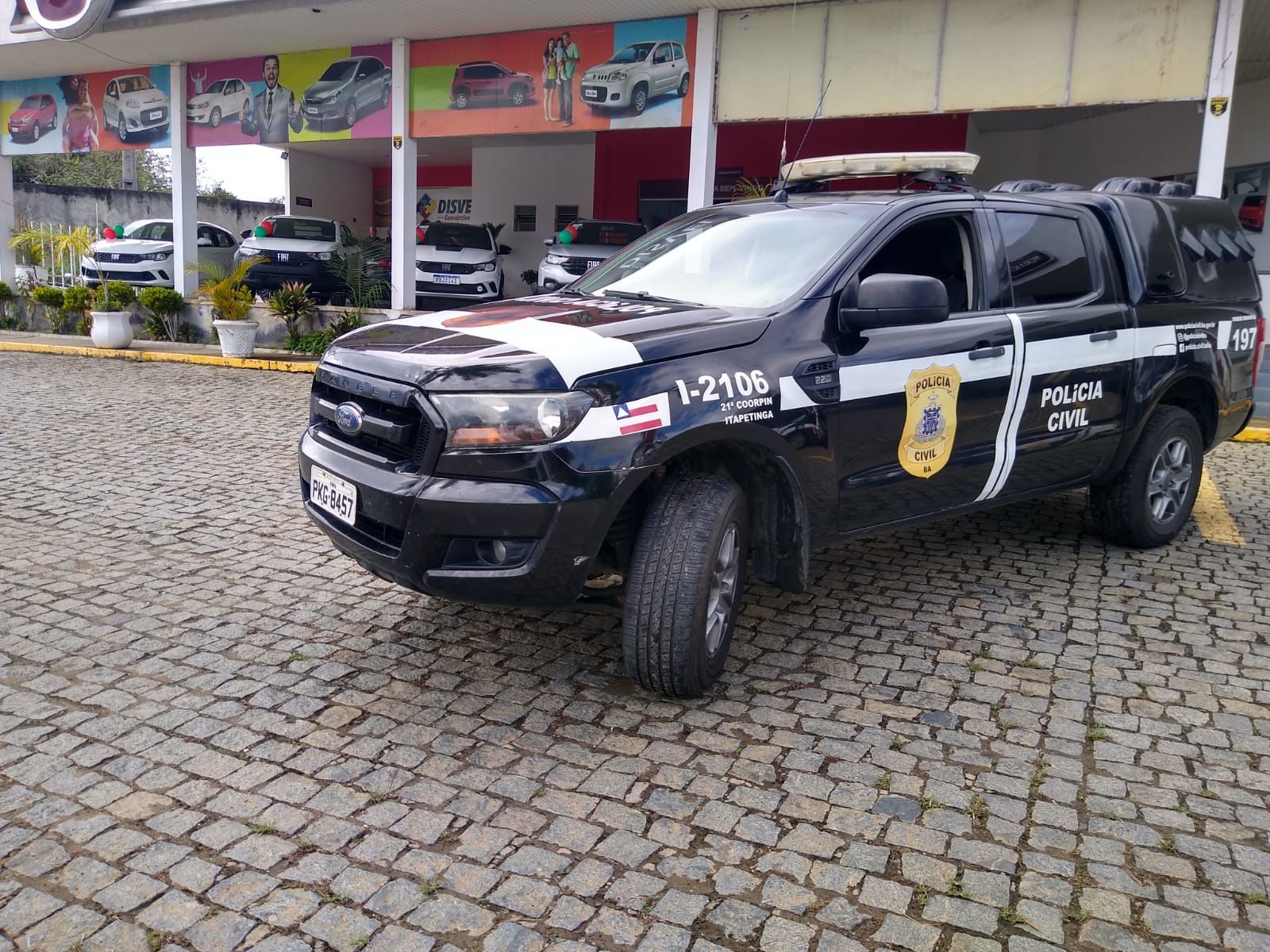 Em Itapetinga, na sede de uma concessionária autorizada de veículos, foi cumprido pelos policiais civis um mandado de busca e apreensão, resultando na apreensão de um veículo NOVA STRADA ENDURANCE CP 1.4, 0 km, além de 426 (quatrocentas e vinte e seis) NFs de vendas diretas de veículos diversos realizadas entre 2015 e 2018 e centenas de cópias de contratos celebrados para vendas de veículos nessa modalidade até 31/08/2021.