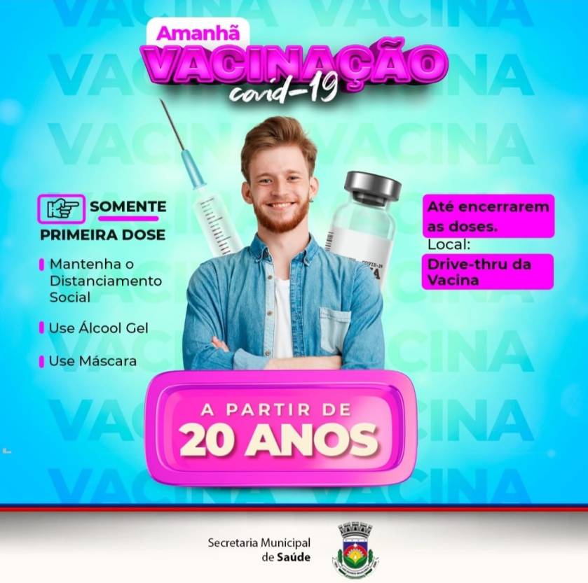 Serão vacinados nesta sexta-feira, dia 03 de setembro, no sistema Drive-Thru, pessoas a partir dos 20 anos de idade. A imunização terá início às 8h da manhã até o encerramento das doses.