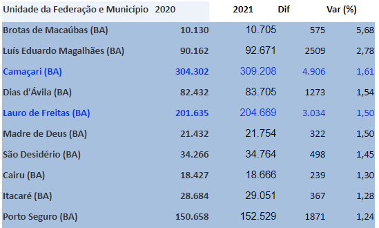 Estimativa do Instituto Brasileiro de Geografia e Estatística (IBGE) coloca Luís Eduardo Magalhães como a segunda entre as dez cidades que mais cresceram na Bahia, no último ano.