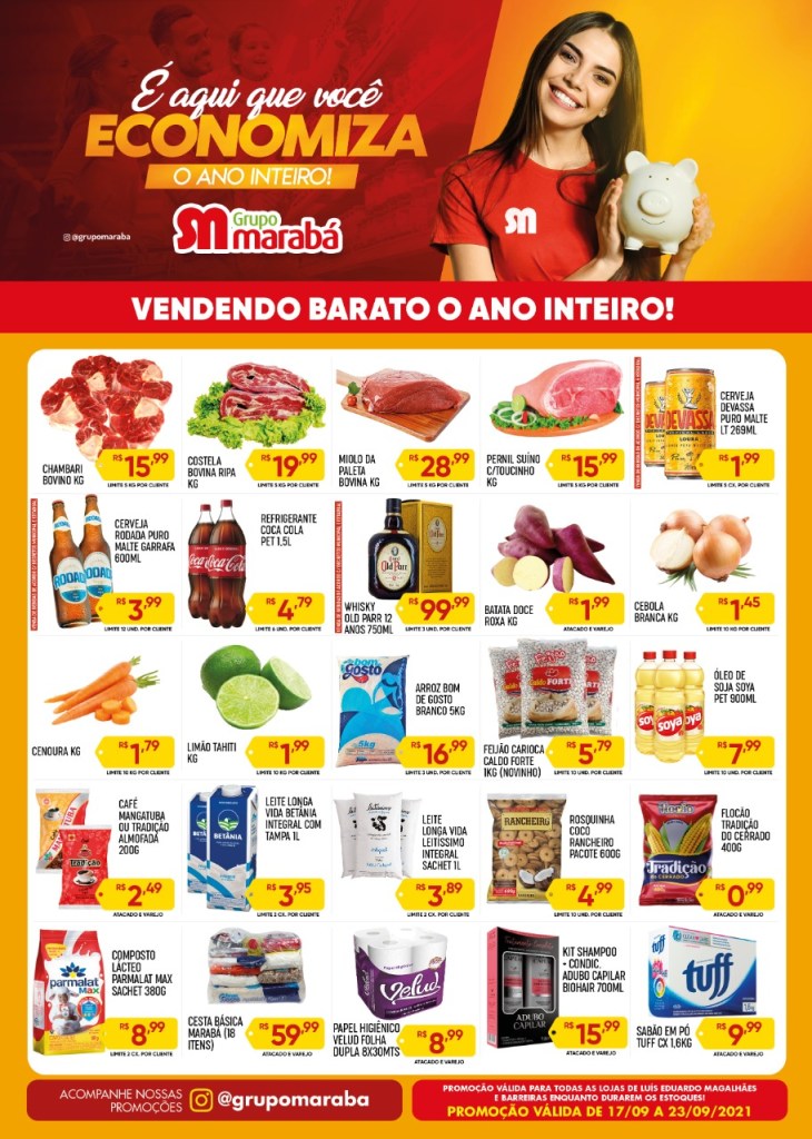 O melhor preço em alimentos está nos Supermercados Marabá.