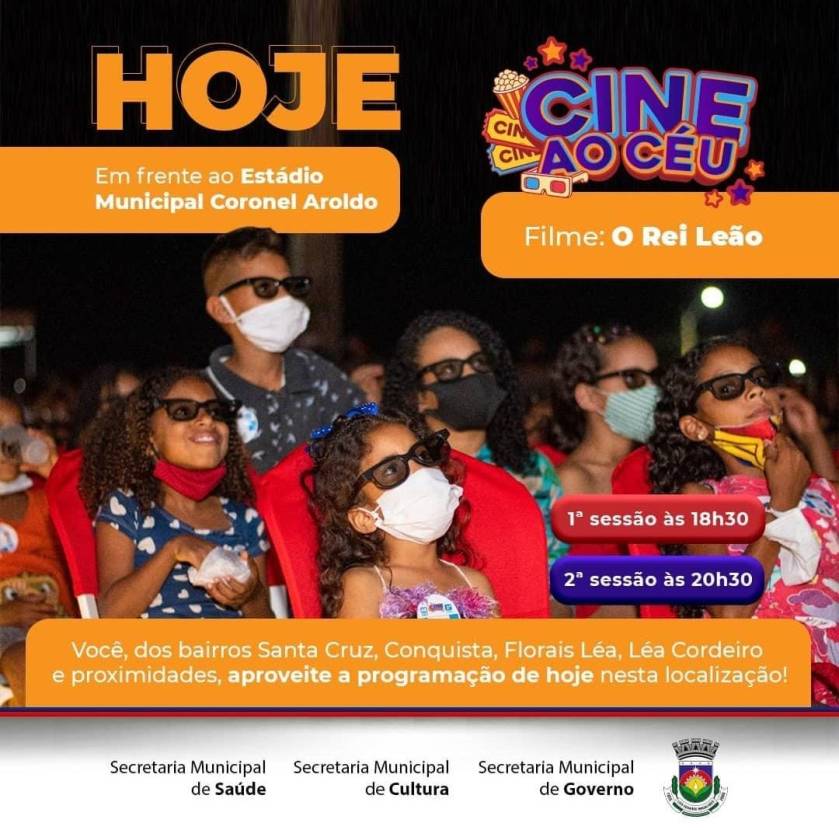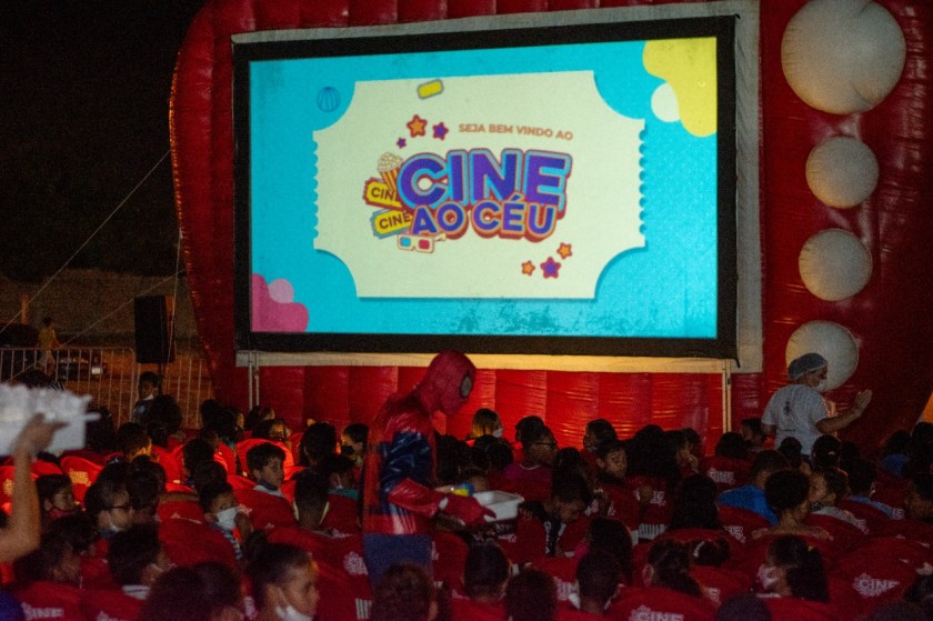 Um cinema a céu aberto, com uma tela gigante e um filme em 3D, com duas sessões. Foi assim a estreia do ‘Cine ao Céu’ nesta sexta-feira, dia 8 de outubro, no bairro Conquista, em frente ao estádio.