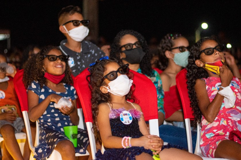 “É muito legal, porque tem as pessoas que eu gosto, tem pipoca, refrigerante. Tudo que tem num cinema, então tá muito legal”, disse Geovana Santos de 9 anos.