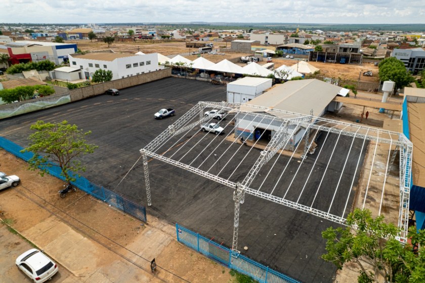 Já foram realizados mais de três mil metros quadrados de asfaltamento na Praça de Alimentação, onde antes era chão de terra.