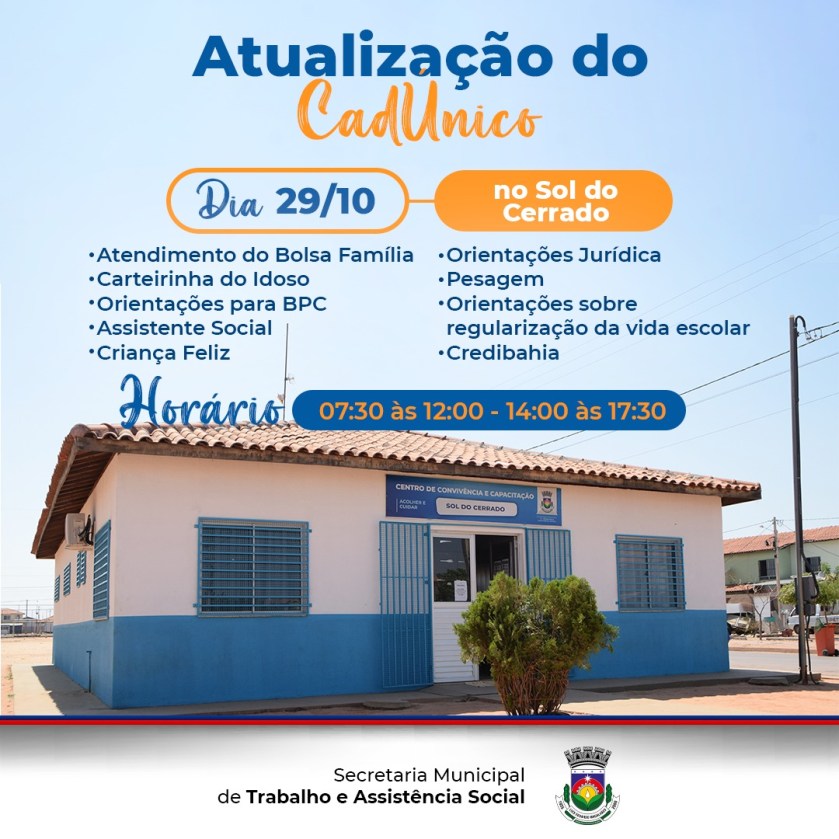 A 3º edição do Bolsa Família em Ação acontecerá na próxima sexta-feira, dia 29, das 7h30 às 12h e das 14h às 17h30, no Centro de Convivência do Sol do Cerrado, em Luís Eduardo Magalhães. Uma ação da Prefeitura, através da Secretaria de Trabalho e Assistência Social.