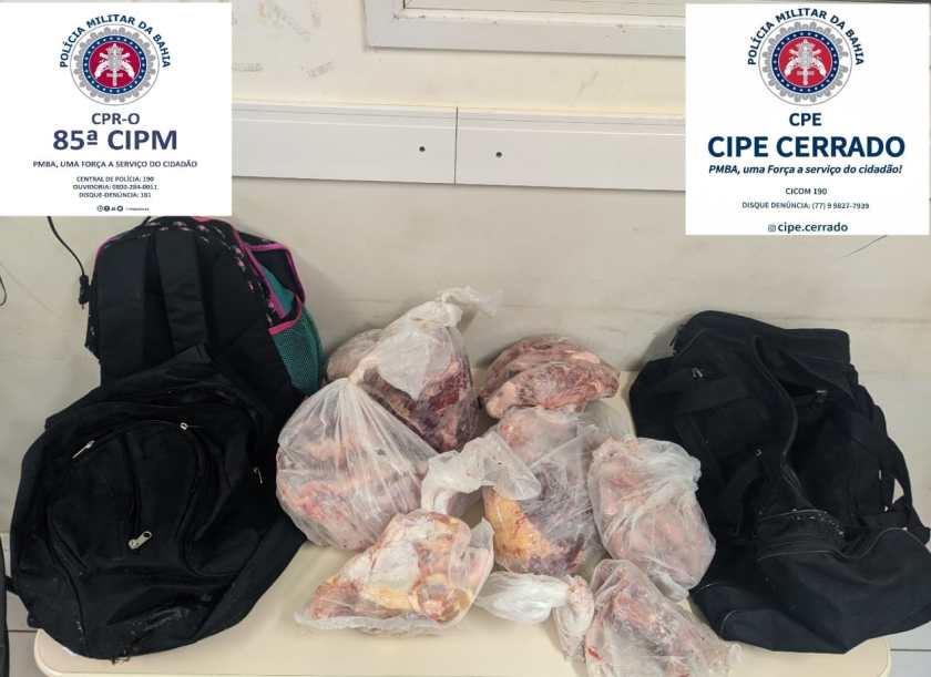 Com a mulher, que também era funcionária da fazenda onde aconteceu o furto de carnes, foram encontrados R$ 8.1 mil, um revólver calibre 38, munições de mesma numeração, três bolsas contendo grande quantidade de carne, porções de maconha, cocaína e crack, caderno com anotações sobre o tráfico de drogas e três balanças.