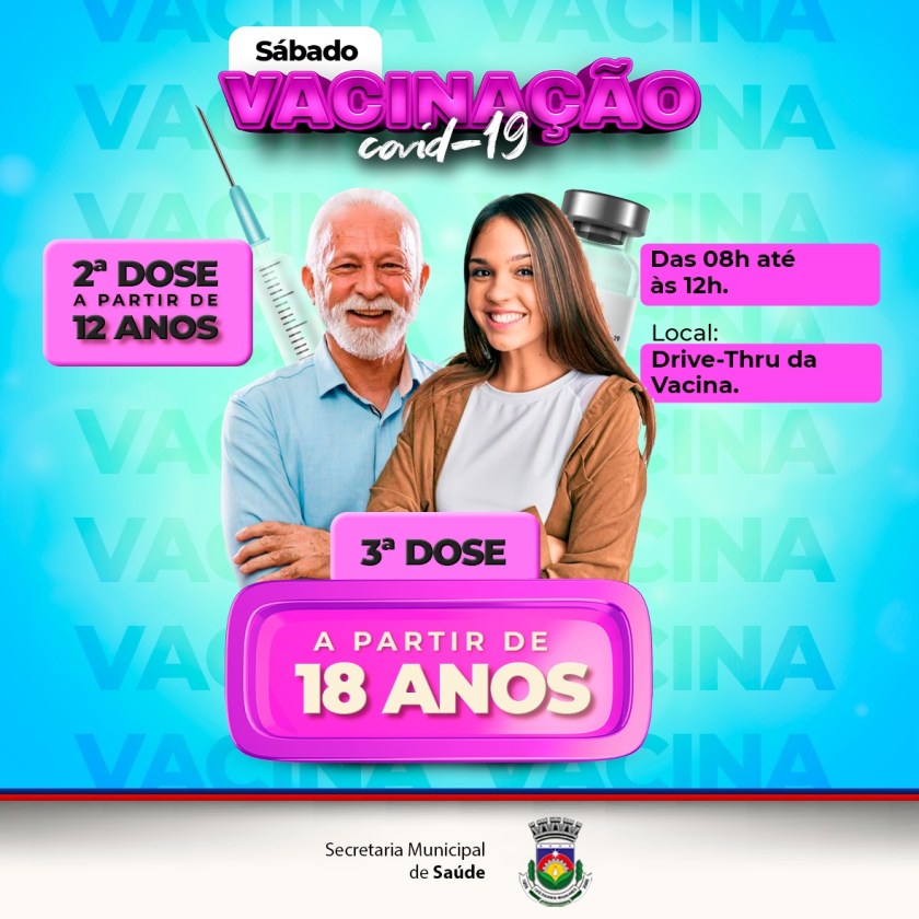 A Prefeitura de Luís Eduardo Magalhães continua com a aplicação da segunda e terceira dose da vacina contra o Covid-19, neste sábado (04), das 8h às 12h, no sistema Drive-Thru.