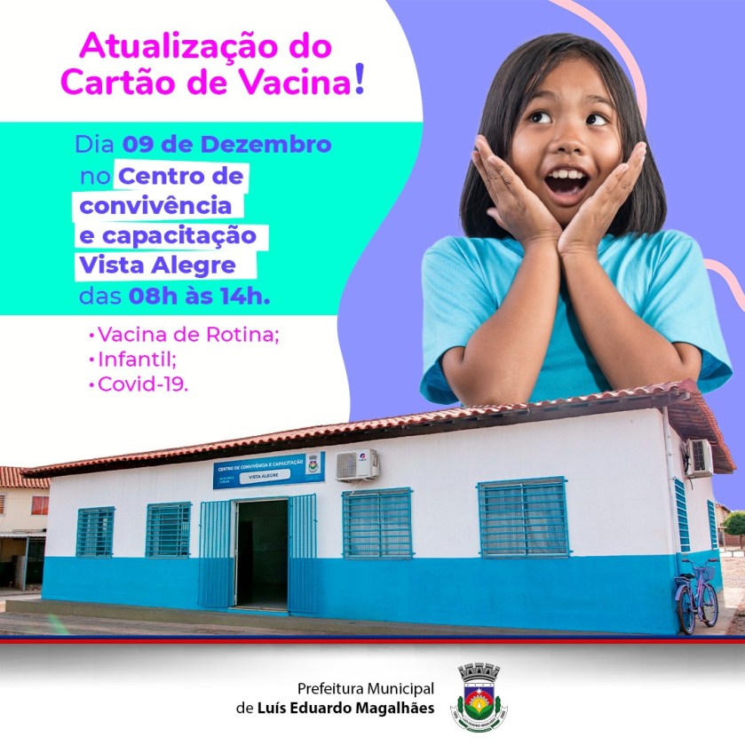 Os moradores do Vista Alegre, terão a oportunidade de atualizar o cartão vacinal das crianças, nesta quinta-feira (09), no Centro de Convivência e Capacitação do bairro. Das 8h às 14h.