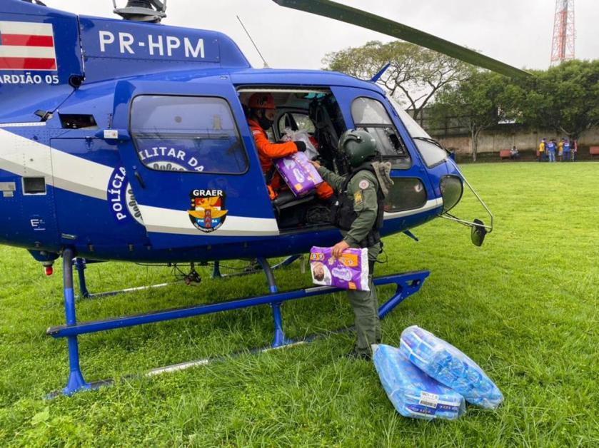 O Grupamento Aéreo da Polícia Militar da Bahia – Graer segue também engajado na força-tarefa nas regiões Sul e Extremo do estado, realizando ações para reduzir os impactos da enchente na população. Ao longo desta sexta-feira (10), os helicópteros Guardião 02 e 05 fizeram sobrevoo nas áreas alagadas para monitorar o alcance das inundações.