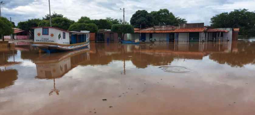 As fotos acima são da comunidade ribeirinha de Goiabeiras, no município de Wanderley. As águas do rio Grande invadiram as ruas da vila, causando prejuízos aos moradores.