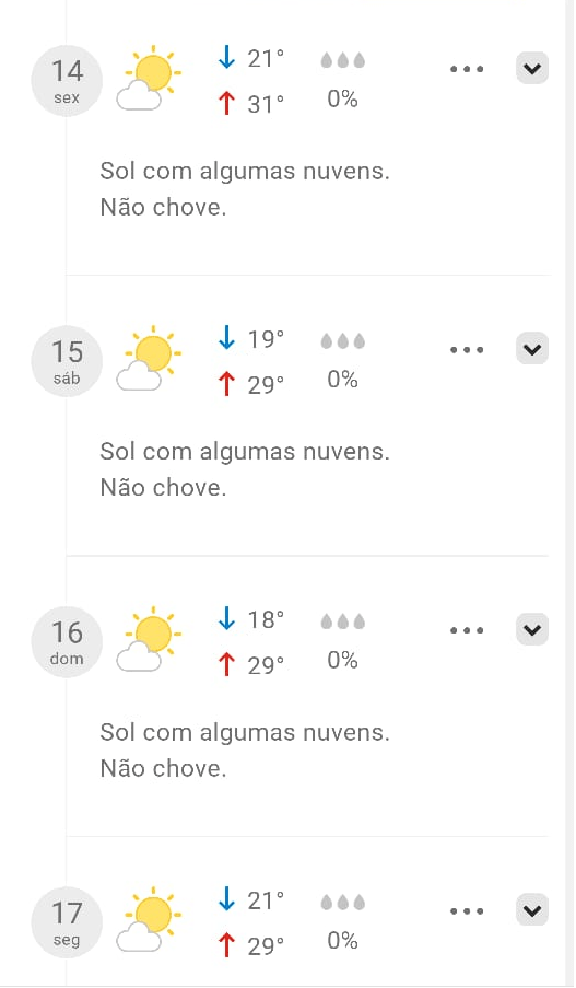 Pois bem: o Climatempo está prevendo que neste dia 14, sexta-feira, para de chover por no mínimo 4 dias.