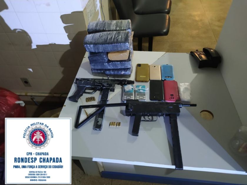 Duas submetralhadoras calibres 380 e 9 milímetros, oito quilos de maconha, divididos em tabletes, porções de cocaína e materiais usados no tráfico de entorpecentes foram apreendidos por equipes das Rondas Especiais (Rondesp) Chapada, após denúncias anônimas. Caso aconteceu na noite da sexta-feira (14), no município de Irecê.