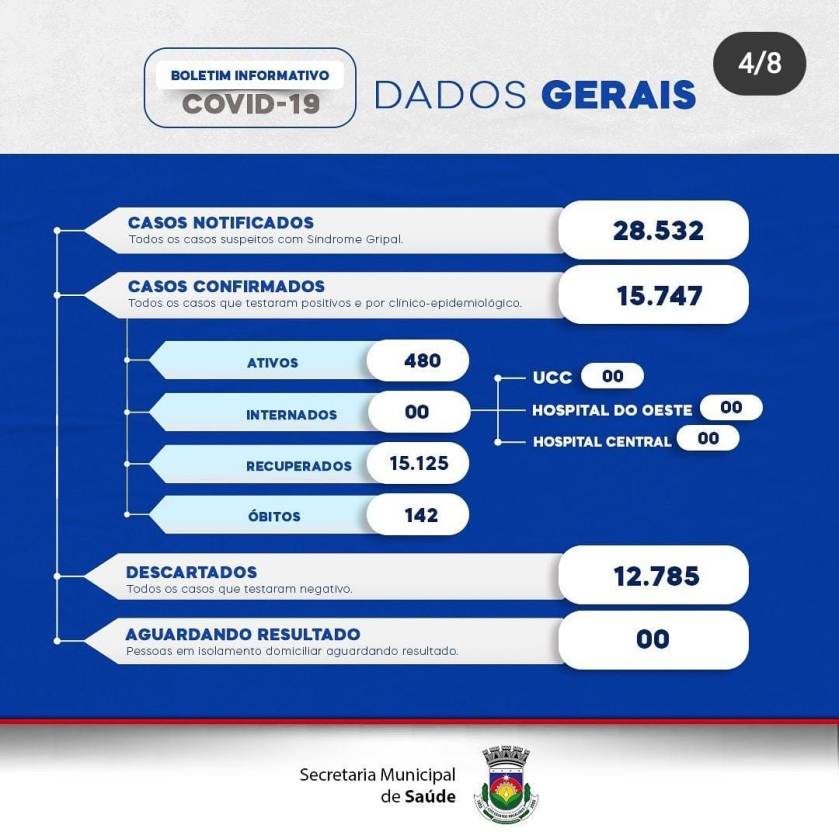 Esta era a posição do dia de ontem, com 423 triagens em 24 horas e confirmação de 156 pacientes confirmados. Os casos ativos são 480 em todo o Município.