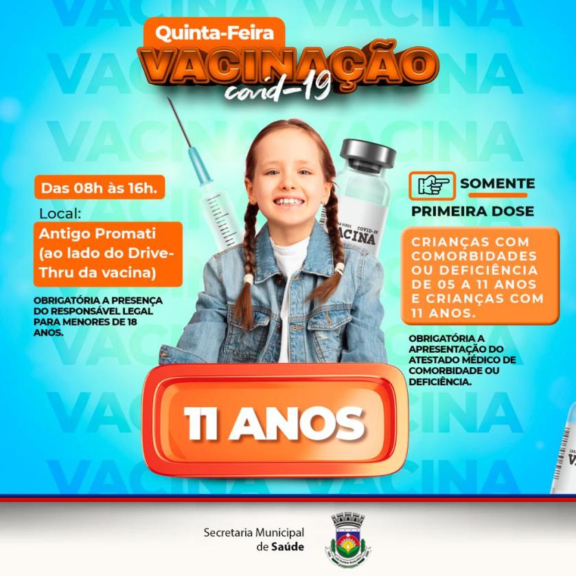 Nesta quinta-feira (20) a Secretaria Municipal de Saúde de Luís Eduardo Magalhães inicia a vacinação para todas as crianças com 11 anos.