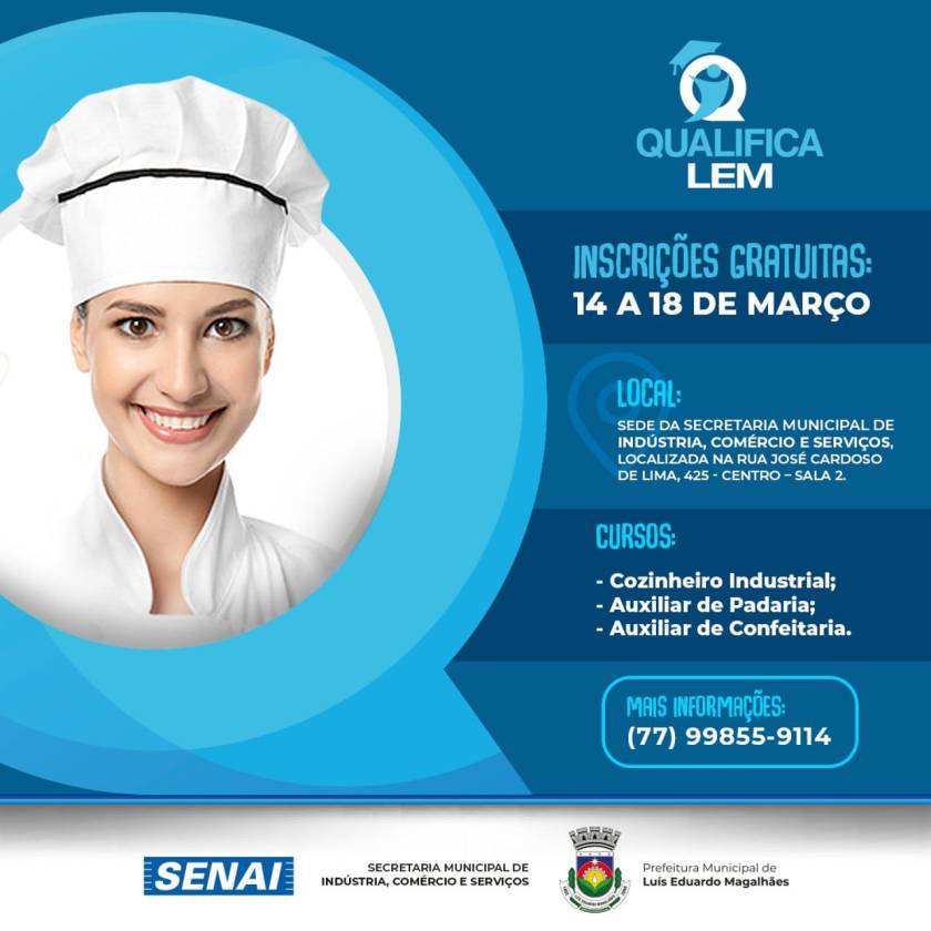 A Prefeitura de Luís Eduardo Magalhães, através da Secretaria de Indústria, Comércio e Serviços, lança mais uma turma do programa Qualifica LEM, em parceria com o Senai, desta vez voltado para o setor de gastronomia, com um total de 120 vagas.
