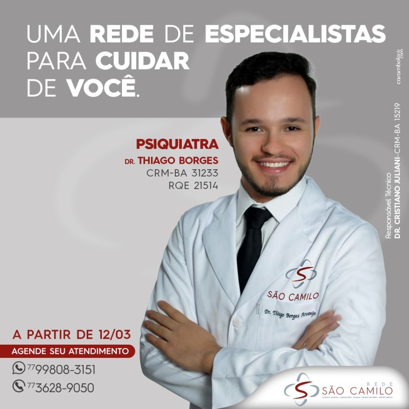 Nossa rede de especialistas não para de crescer. A partir do dia 12 de março você contará com a presença do Dr. Thiago Borges, especialista em Psiquiatria.