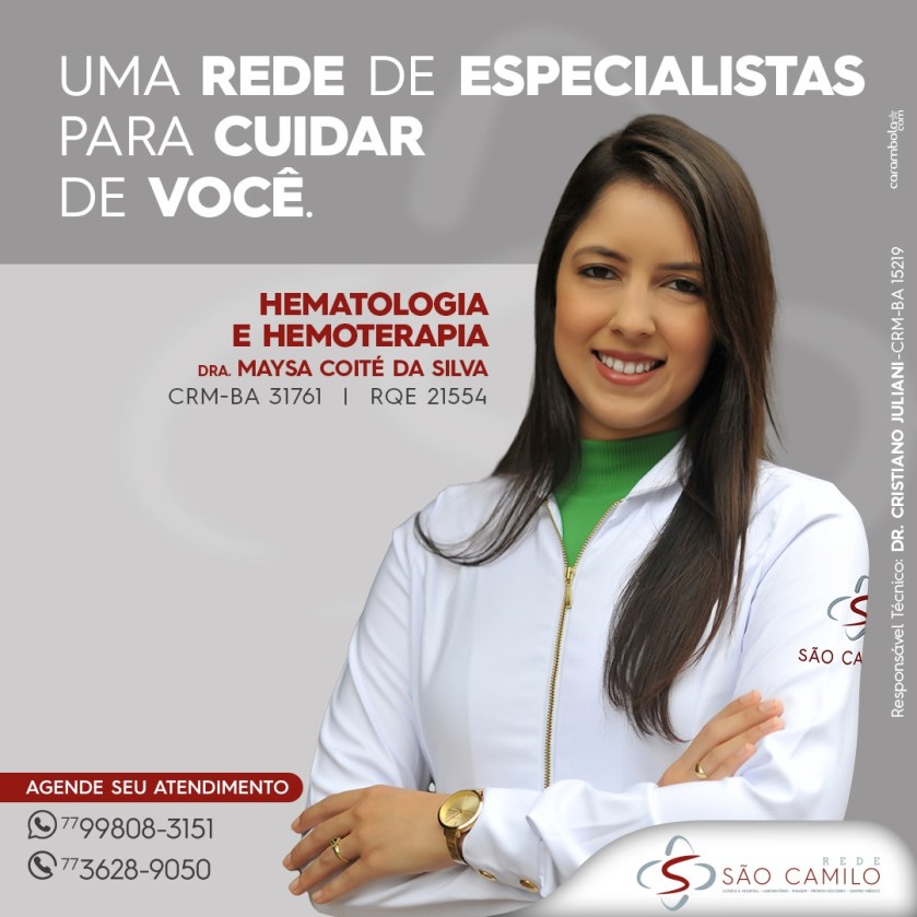 Hematologia e Hemoterapia é no Centro Médico São Camilo, com a Dra. Maysa Coité da Silva (CRM-BA 31761/ RQE 21554).