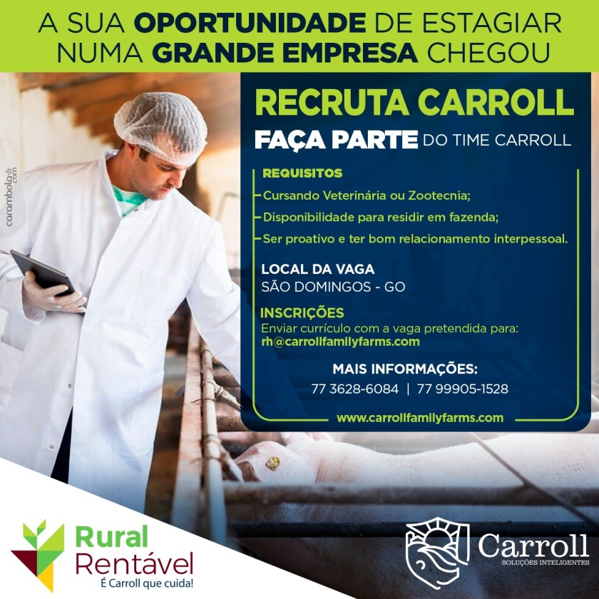 Nosso espaço está aberto para você começar a escrever sua história junto ao time da Carroll. Envie seu currículo para rh@carrollfamilyfarms.com e aguarde o nosso contato. Boa sorte.