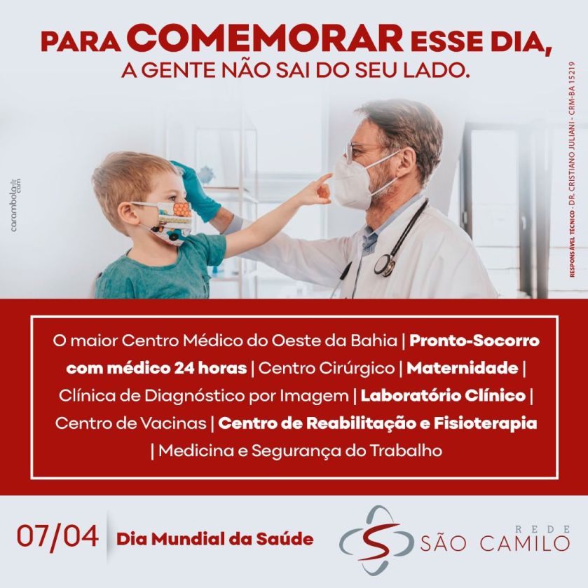 Comemorar o Dia Mundial da Saúde é muito significativo para todos nós. Nele, lembramos o quanto se cuidar faz a diferença. E, se o assunto é cuidado, a São Camilo está presente com uma rede de atenção completa para você. Afinal, nesse e em todos os outros dias, a gente não sai do seu lado.