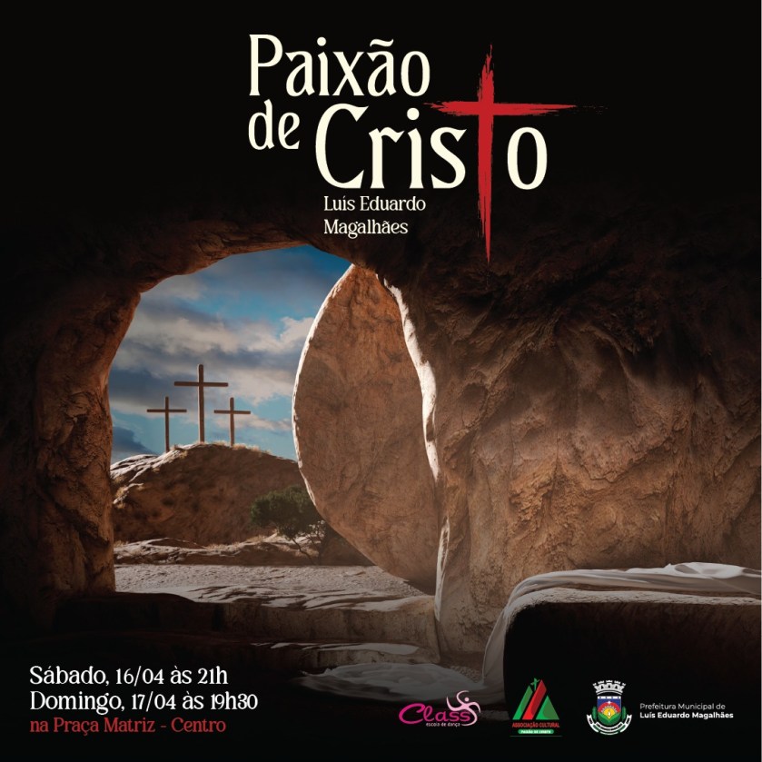 Nos dias 16 e 17 de abril, será encenado na Praça Matriz, no centro do município, o Espetáculo A Paixão de Cristo, que expressa o verdadeiro sentido da Páscoa.