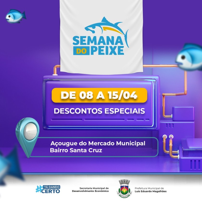Com o objetivo de estimular o consumo de peixes na Semana Santa, a Prefeitura de Luís Eduardo Magalhães, através da Secretaria de Desenvolvimento Econômico, está promovendo a ‘Semana do Peixe’, com descontos especiais.