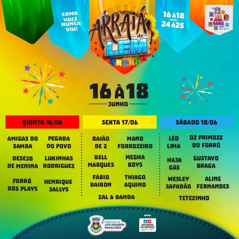 Confira a programação completa do maior São João do Oeste da Bahia, o Arraiá de LEM!