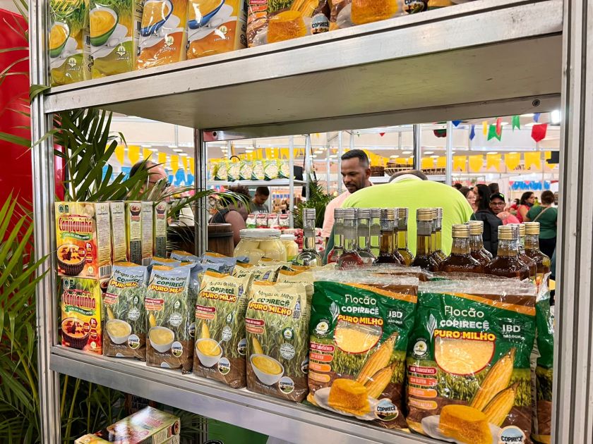 São 30 toneladas de 150 produtos. Tem café gourmet; chocolate; flocão de milho não-transgênico; cortes finos de caprinos e ovinos; mel e pólen, castanha de caju e pasta de castanha de caju; doce de goiaba com acerola; frutas desidratadas como abacaxi, jaca e banana; cervejas artesanais de licuri, nibs de cacau e umbu; além de produtos artesanais de povos indígenas e quilombolas; e muitos mais.