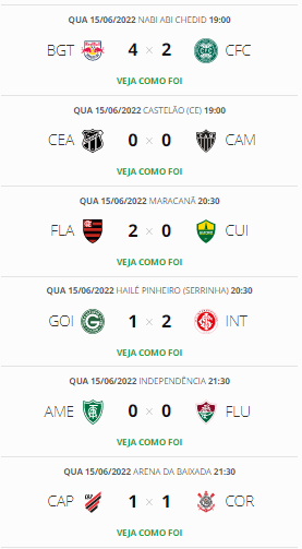 Resultados de ontem pela 12ª Rodada do Brasileiro.