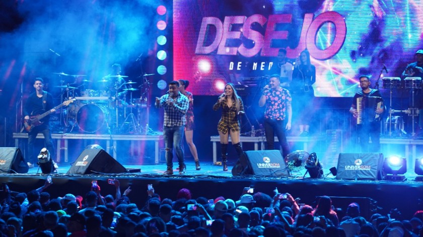 A banda Desejo de Menina, que está com agenda lotada para o mês de junho, subiu ao palco do maior São João do Oeste baiano por volta das 23h e fez bonito.