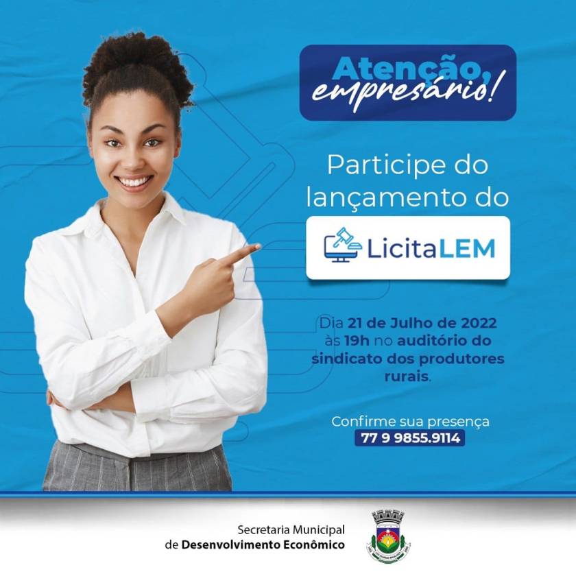 Com o objetivo de aumentar a participação de empresas da cidade em processos de licitação em Luís Eduardo Magalhães, a Prefeitura, através da Secretaria Municipal de Desenvolvimento Econômico, vai realizar o lançamento do portal LICITALEM no próximo dia 21 de julho.