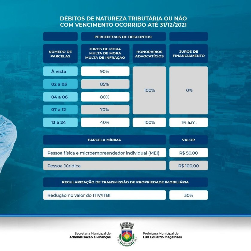 Uma excelente oportunidade para que o munícipe regularize os seus débitos com o município e contribua com o desenvolvimento da cidade.