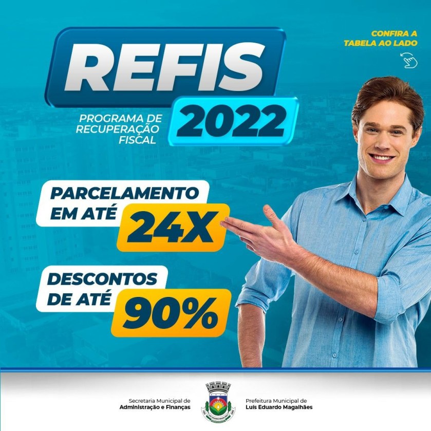 O contribuinte de Luís Eduardo Magalhães, pessoa física ou jurídica que precisa regularizar suas dívidas fiscais com o município já pode realizar a sua adesão ao REFIS 2022. A lei 1.023 entrou em vigor nesta terça-feira (28), após sanção do prefeito Junior Marabá.