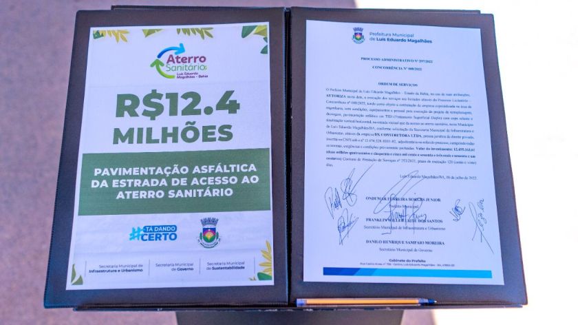 Foi assinada nesta quarta-feira (06),  ordem de serviço para início da pavimentação asfáltica da via de acesso ao aterro sanitário, em Luís Eduardo Magalhães.