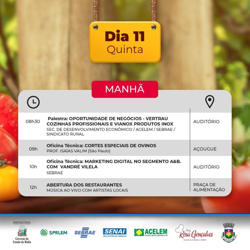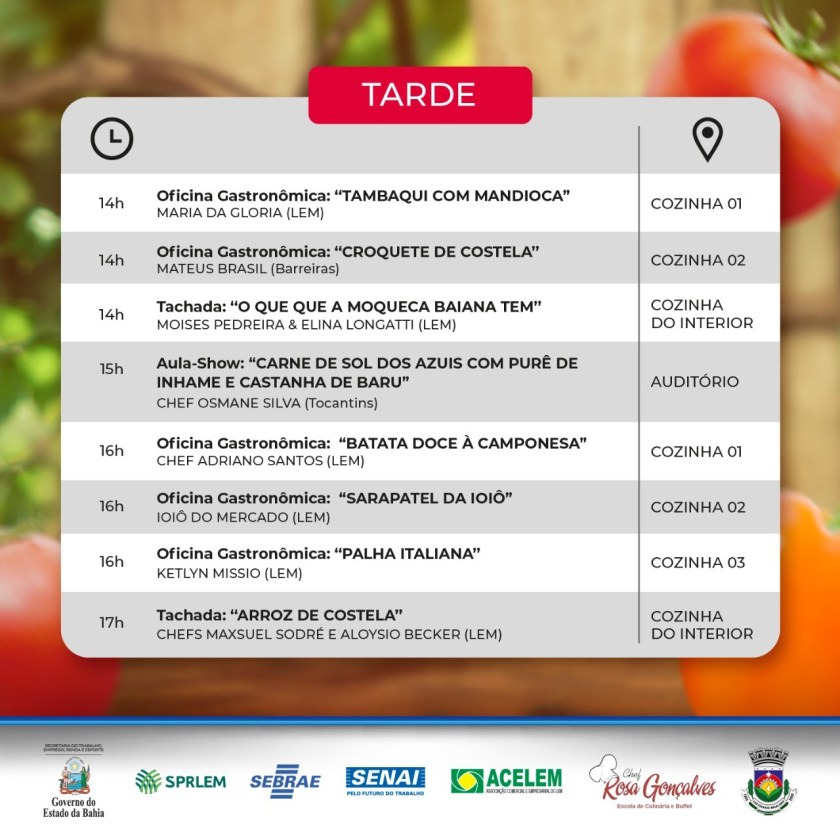 A IV edição do LEM Gastronomia é uma realização da Prefeitura de Luís Eduardo Magalhães, com curadoria gastronômica da Escola de Culinária Rosa Gonçalves.
