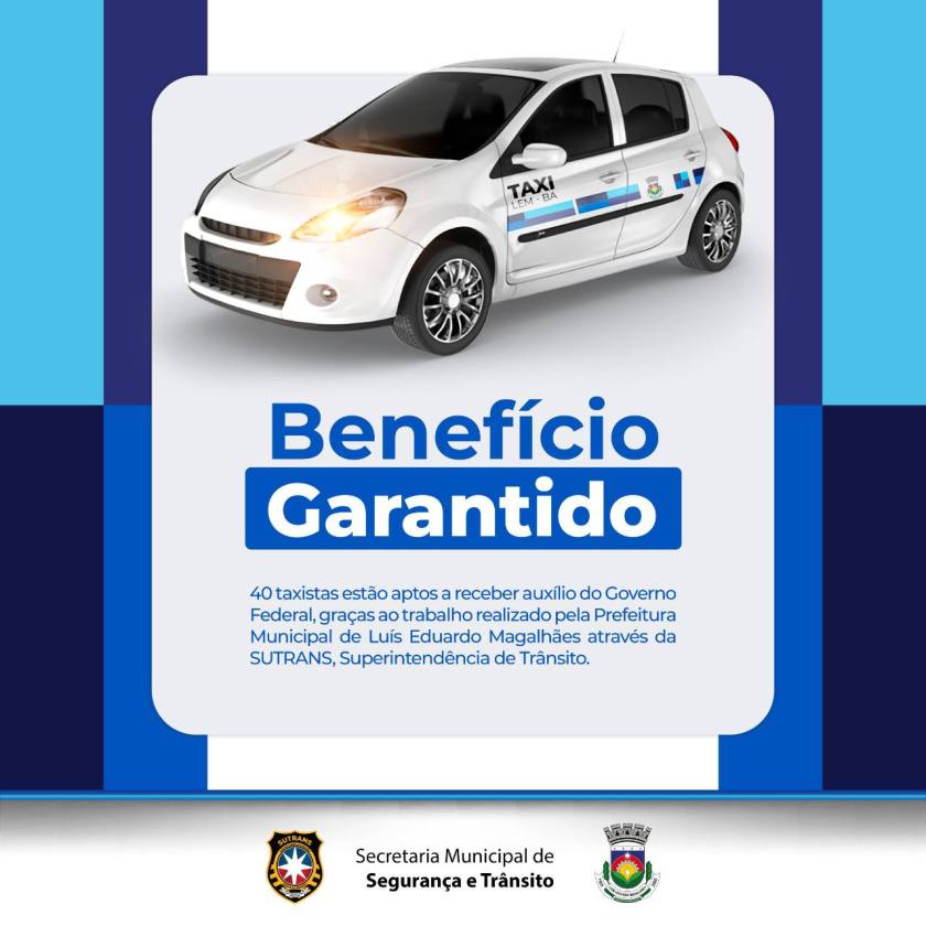 Graças ao trabalho eficiente de cadastramento, realizado pela Prefeitura de Luís Eduardo Magalhães, através da Superintendência de Trânsito e Transporte (SUTRANS), 40 taxistas do município estão aptos a receber o pagamento das duas primeiras parcelas do Bem-Taxista, benefício emergencial do Governo Federal. O cadastramento aconteceu entre os dias 05 e 15 de agosto, na sede da SUTRANS.