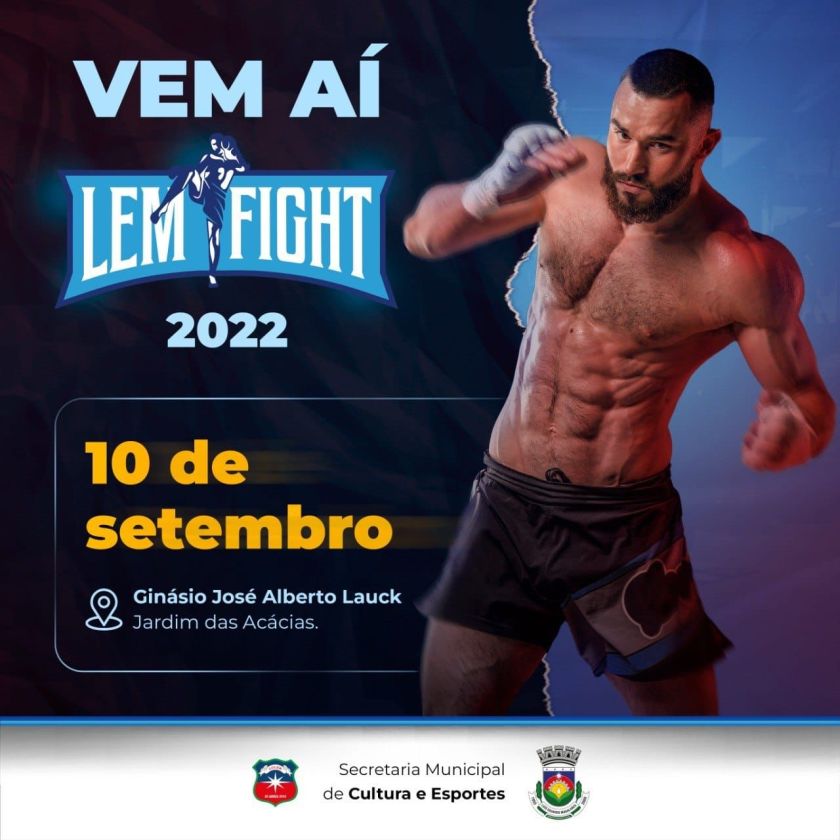 A competição vai reunir mais de 40 lutadores da cidade e de outros municípios, nas modalidade de Muay Thai, MMA e boxe. O LEM FIGHT é uma realização da Prefeitura, através da Secretaria Municipal de Cultura e Esportes, com o apoio do CT Irmãos Soares, através de convênio com a Liga Desportiva.