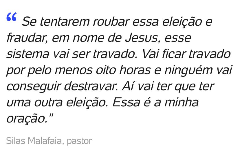 Uma das figuras mais asquerosas desse governo miliciano-teocrático-militar, o pastor Silas Malafaia não tem o pundonor de imiscuir Deus em questiúnculas eleitorais, tal a sua sede pelas benesses do atual regime.