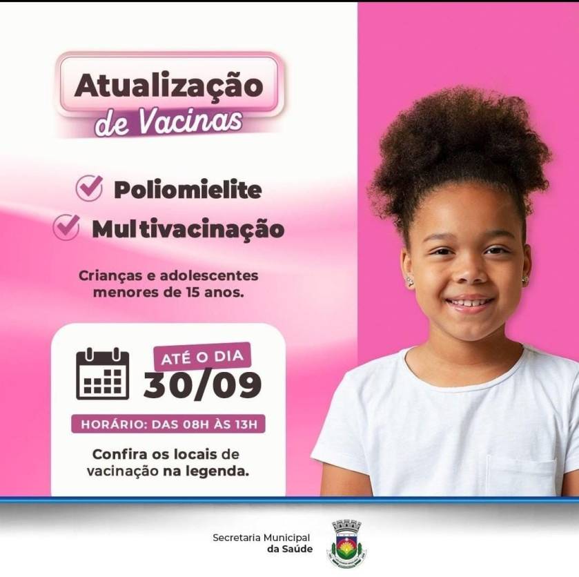 As Campanhas Nacional de Vacinação contra a Poliomielite e a de Multivacinação para Atualização da Caderneta de Vacinação da Criança e do Adolescente, foram prorrogadas até o dia 30 de setembro.